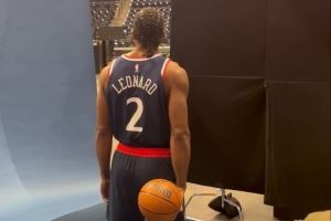 不受阴阳合同风波影响!莱昂纳德出席快船媒体日 摆造型拍定妆照