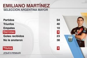 大马丁为阿根廷队出战54场仅4败,丢23球零封38场+9次扑点